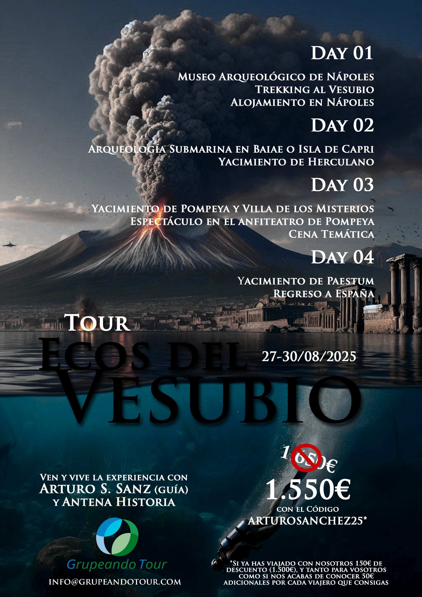 A partir de este año, comenzaré a colaborar con mis grandes amigos del Podcast Antena Historia y de la agencia Grupeando Tour como guía turístico en un nuevo proyecto apasionante. Nuestro primer destino serán las míticas Pompeya y Herculano, pero poco a poco introduciremos nuevos y apasionantes destinos para compartir experiencias con quienes queráis acompañarnos.